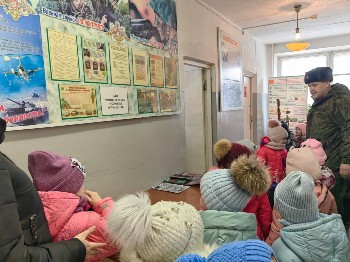 16 декабря воспитанники вместе со своими родителями побывали в войсковой части 18401. Детей провели по территории части командир радио-локационной роты старший лейтенант ,Малышев Сергей Геннадьевич и Михаил Викторович Шмелев , помощник военного комиссара по Уренскому и Ветлужскому муниципальным округам. Они показали и рассказали, как несут службу призывники. С целью ознакомления с условиями быта дети посетили казарменное помещение, солдатскую столовую. Так же детям рассказали о том, что военнослужащие тоже учатся и у них проходят уроки специальной подготовки. Экскурсия оказалось интересной, не только для детей, но и для взрослых. |
