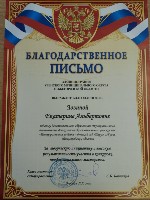 | Благодарственное письмо за подготовку участников к VII международному конкурсу "Расскажи миру о своей Родине", 2024 г. |